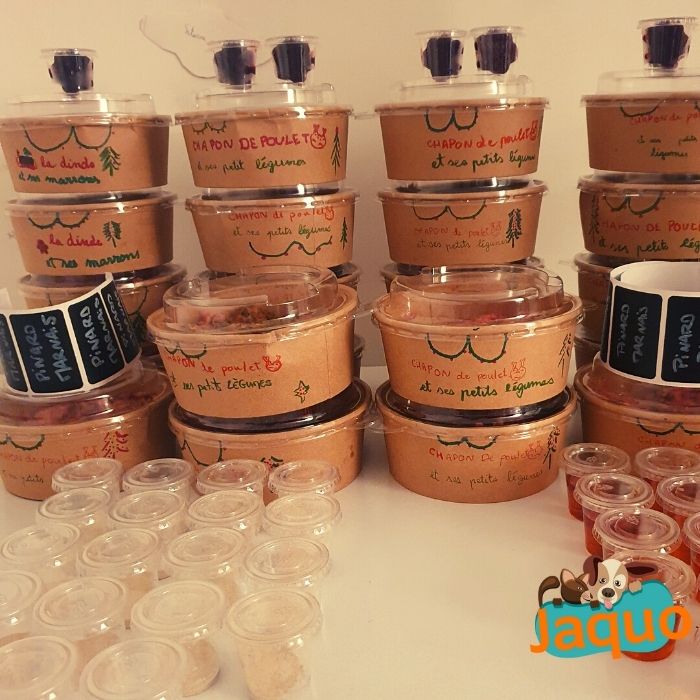 Cuisiné de frais pour le 24 jusqu’en 2023, votre traiteur local marnais cuisine le Repas de réveillon de Noel pour chien et chat cuisiné. Egalement accompagné d’un cadeau de Noel original à accrocher au sapin : la chaussette de Noel personnalisée remplie de friandises Jaquo.